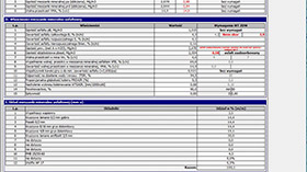 Ewidencja recept badania typu mieszanki asfaltowej. Celem zastosowania tego oprogramowania jest pełna kontrola recept badania typu pod względem prawidłowości wprowadzenia danych i przeprowadzenia skomplikowanych obliczeń zmierzających do określenia zgodności lub nie zgodności parametrów mieszanki mineralnej i mieszanki mineralno-asfaltowej z receptą. Użytkownik wprowadzając podstawowe dane tj.: typ mm-a, rodzaj walidacji, pakiety składników i procentowy udział w mieszance mineralnej otrzymuje rozpoczyna niezwykle skomplikowany proces obliczeń przeprowadzany automatycznie przez oprogramowanie. Wynikiem analizy jest przede wszystkim określenie lub wykluczenie zgodności (w procentach) ale również obliczenie takich parametrów jak.: Zawartość frakcji powyżej 2 mm, % (m/m); Zawartość frakcji poniżej 0,063 mm, % (m/m); Gęstość mieszanki mineralnej ρa (obliczona), Mg/m3; Gęstość mieszanki mineralnej ρrd (obliczona), Mg/m3; Wolna przestrzeń VMA, % (v/v); Współczynnik korekcyjny α do min. zawartości asfaltu (=2,650/ρa), Odporność na działanie wody i mrozu: ITSR, % i wiele innych. Oprogramowanie dysponuje pełnym wachlarzem szablonów wydruków tj.: kontrola recepty, arkusz kontrolny z wykresem, formularz kontrolny z wykresem, sprawozdania, itp.